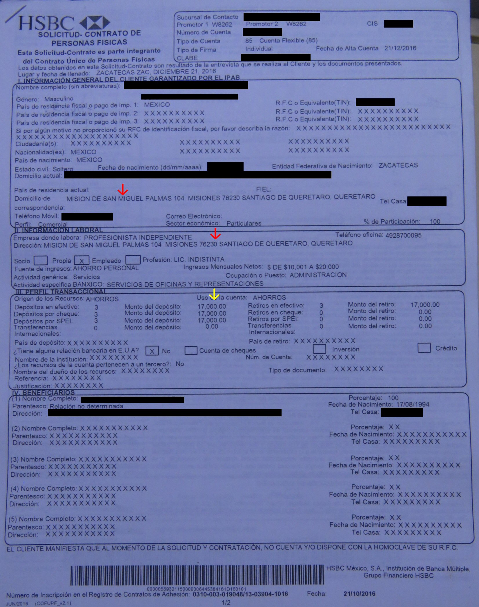 Martha Patricia Avilés Hernández abrió una cuenta en el banco HSBC en Querétaro ILEGALMENTE A MI NOMBRE sin mi permiso y sin hacerme saber de esto, de eso me di cuenta en Diciembre 21, 2016, ya que yo abrí una cuanta en HSBC y la señorita que me abrió la cuenta me dijo que yo tenía una cuenta en Querétaro a lo que le dije que no, pera la señorita puso parte de la información que estaba en la cuenta de Querétaqro la información que proveyó mi Martha Patricia Avilés Hernández al abrir ilegalmente la cuenta de banco es: