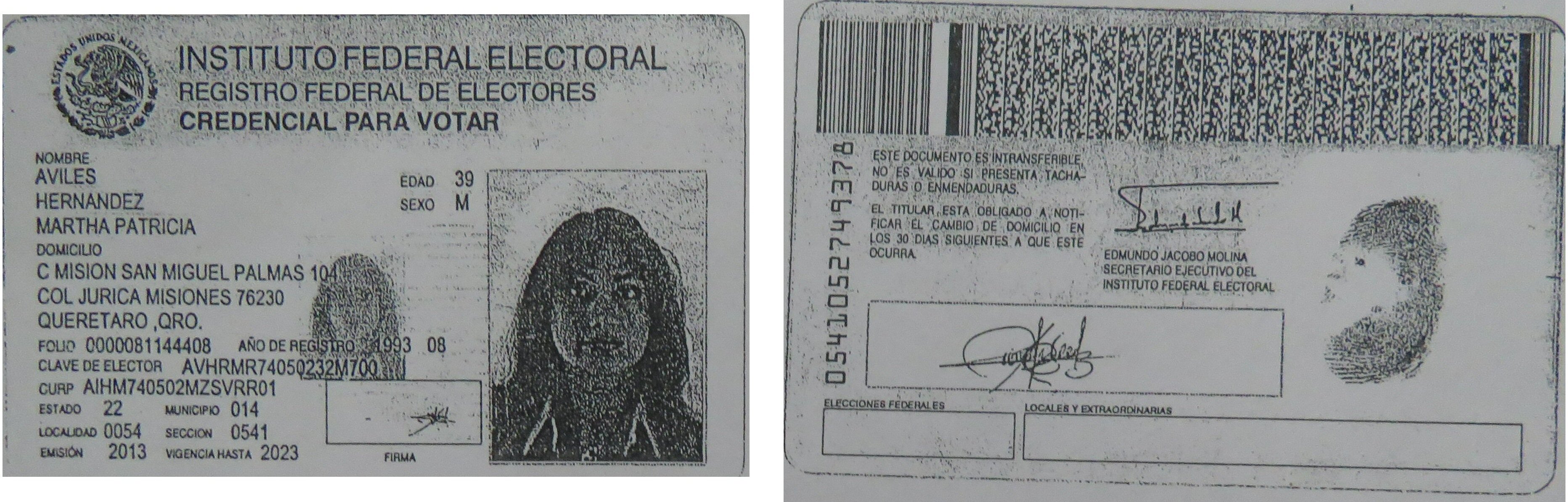 Vean en la siguiente imagen que la dirección en la cuenta de banco es la misma que en el IFE de Martha Patricia Avilés Hernández, su IFE está en la parte superior de esta página.